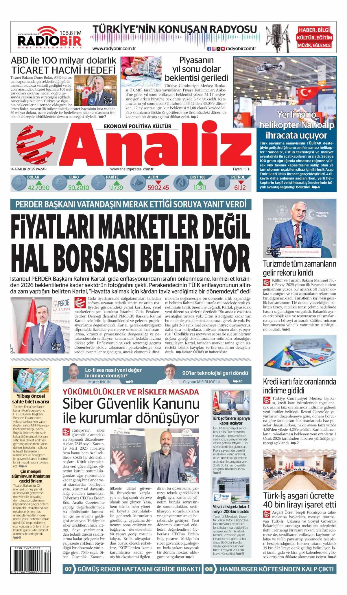 Harbi Gazete Gazetesi 14 December 2025, Sunday Günü Manşeti