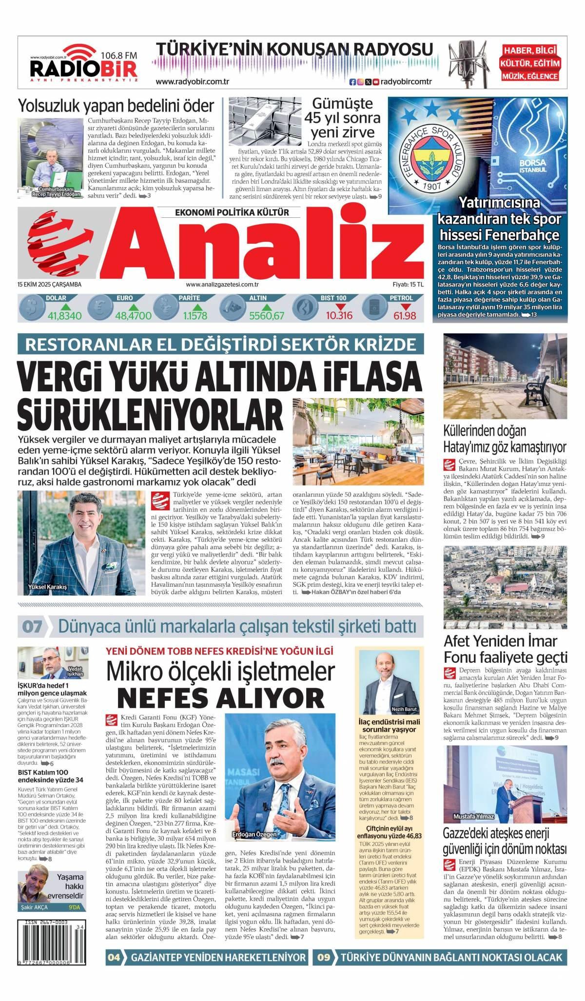Harbi Gazete Gazetesi 15 October 2025, Wednesday Günü Manşeti