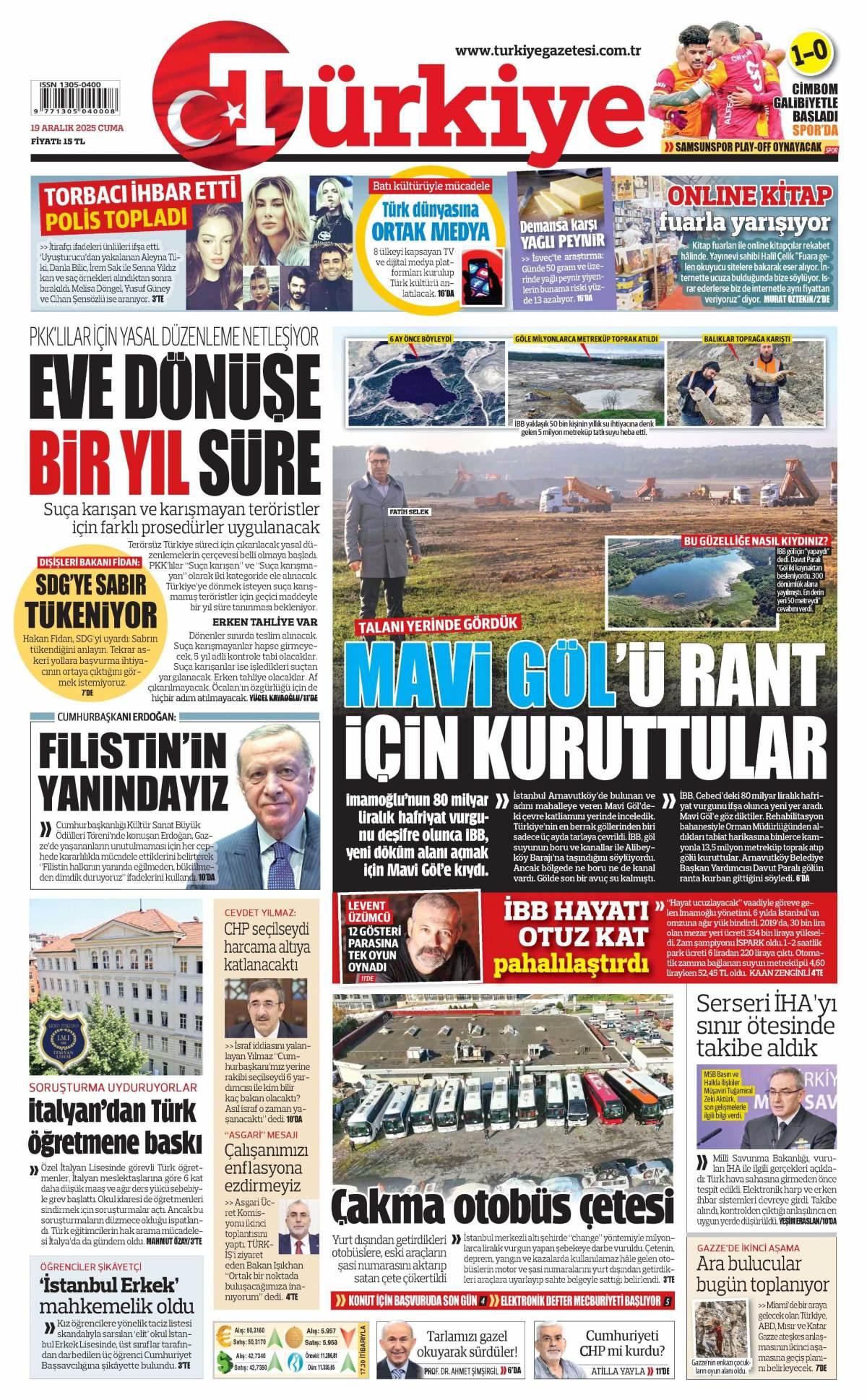 Türkiye Gazetesi 19 December 2025, Friday Günü Manşeti